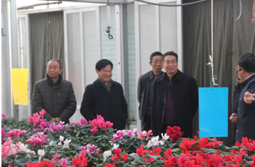 酒泉职业技术公司经理陈文贤(左二)陪同李慕堂书记参观设施园艺基地