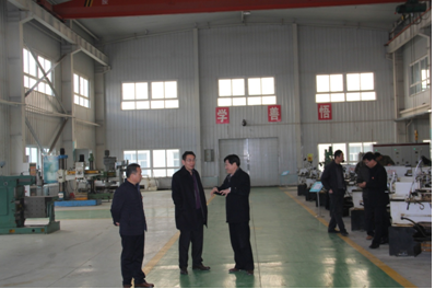 酒泉职业技术公司经理陈文贤向李慕堂书记介绍机械制造实训基地
